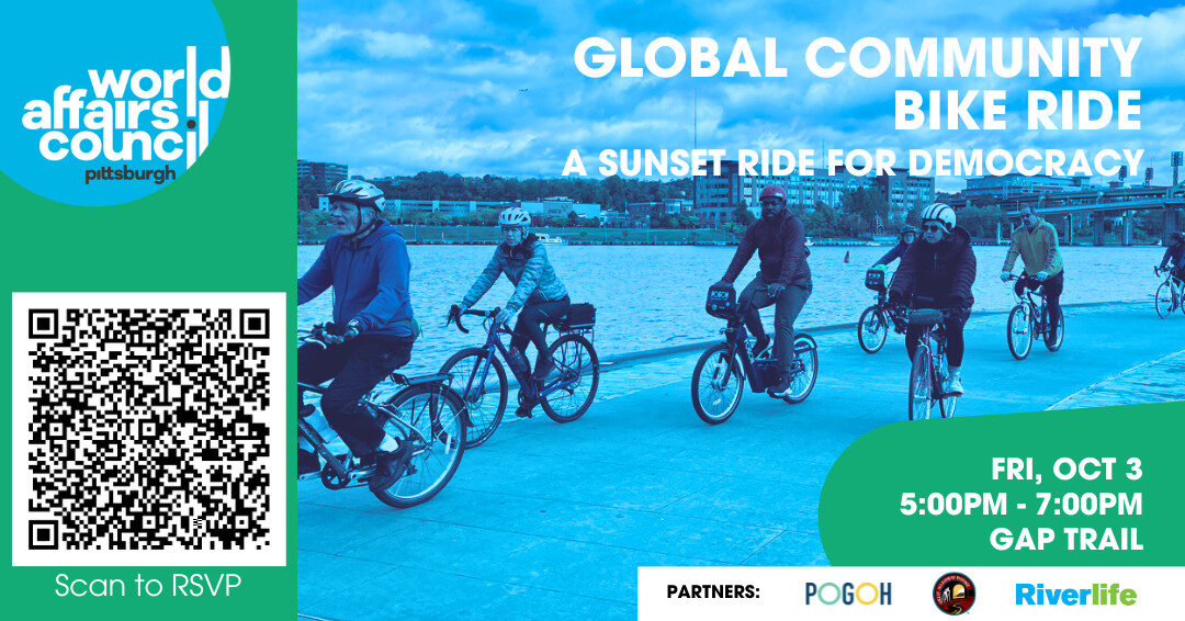 Global Community Bike Ride: A Sunset Ride for Democracy Explore the city and the meaning of democracy on this community bike ride! Join the World Affairs Council of Pittsburgh for a Global Community Bike Ride on Friday, October 3rd from 5:00PM-7:00PM to enjoy our city’s streets, connect with globally-minded friends and neighbors, and take in […]